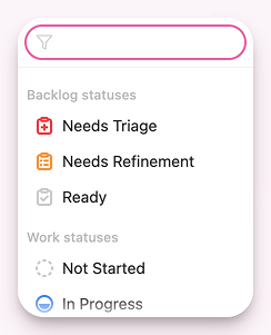 Without dedicated backlog statuses, most teams end up rehashing conversations, losing track of what's ready, and dragging half-scoped work into sprints. Some tools let you add custom statuses — but they're often global, not scoped to the backlog. With Momentum, statuses like Needs Triage and Needs Refinement are purpose-built for pre-development workflows, right where they belong.