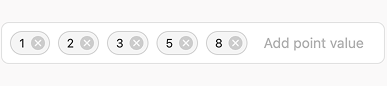 By default Momentum uses the Fibonacci point scale (1, 2, 3, 5, 8). But the scale is fully configurable, so feel free to change to whatever works best for your team's estimation approach - linear (1, 2, 3, 4), powers of 2 (1, 2, 4, 8), something comparable to swimming distances (25, 50, 75, 100), etc. - whatever you need!