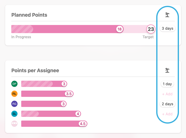 Yes! Momentum shows you point allocation breakdown by assignee, so you can ensure balanced workloads and identify potential bottlenecks before the sprint starts. This visibility helps prevent overcommitting or undercommitting individual team members and ensures a more sustainable planning approach.